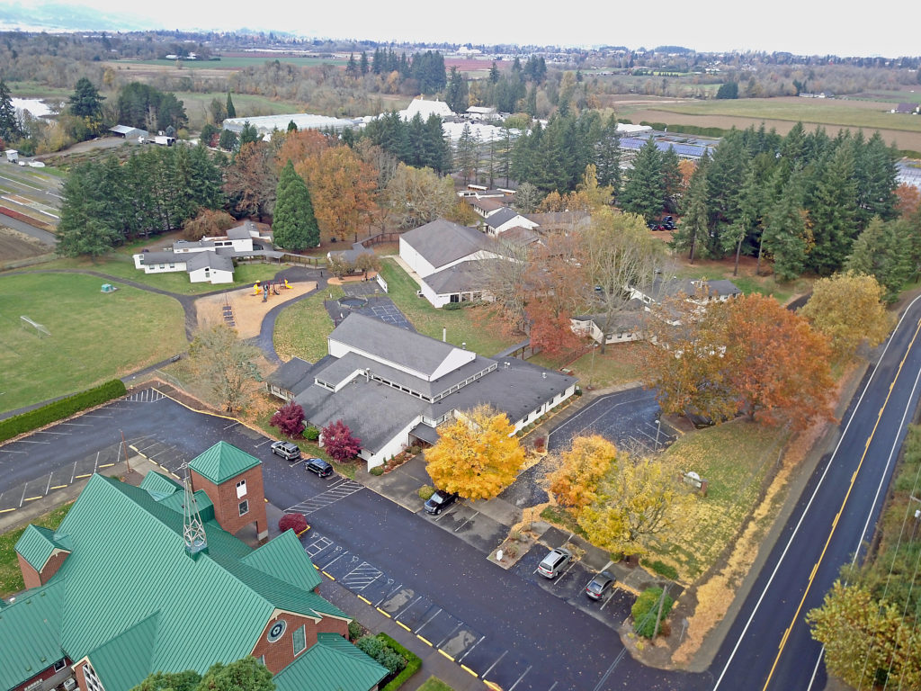In 1993, Dan Seim, principal at Pilgrim and Bonnie Busacker (Moeller), 5th-6th grade teacher, were invited to visit the facilities of Good Shepherd Home of the West, south of Cornelius by Chaplain Kachmarek. Good Shepherd was in the process of relocating its developmentally disabled residents to group homes in the area and was open to leasing its campus to other organizations. The buildings there had been constructed on a 12-acre campus in the early 70’s and were built to house 85 residents in several residence buildings, an office and classroom building and several other support structures.